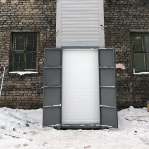 - Двери кабины раздвижные в виде рольставней или решетка «Боствинг»;