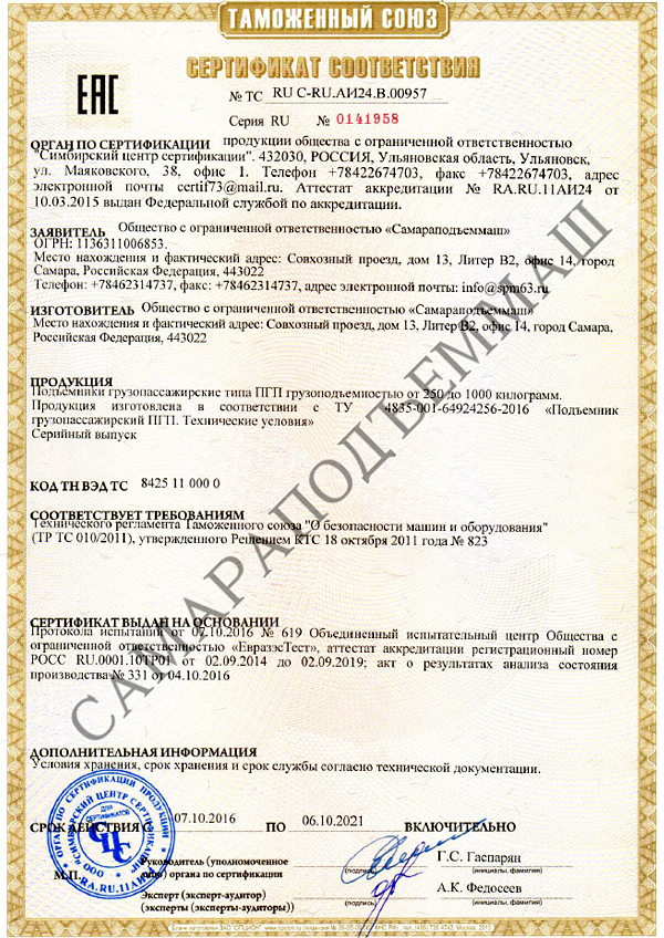 Посмотреть все сертификаты на наши подъемники.